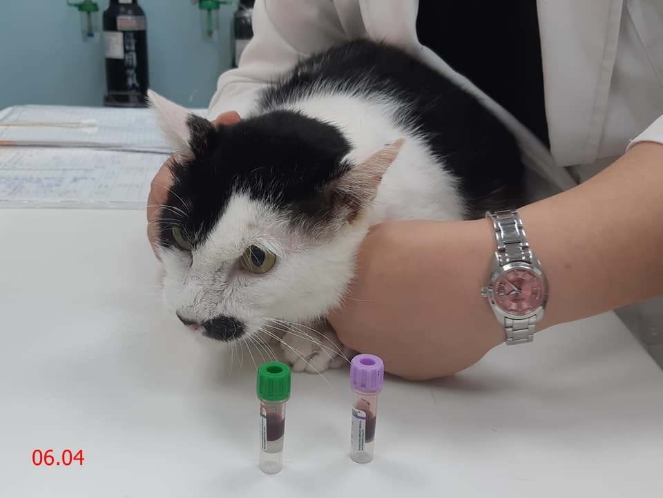 鮮草因流浪覓食不易加上受傷一段時日,更使得健康情況不穩定,協會安排他至沐恩醫院做X光、血檢、口腔檢查,醫師發現鮮草心臟輪廓不是很正常、脊椎有退化情況使得動作緩慢、身體左側傷口膨起,可能是因受傷而少一處肌肉,使腸子集中於此處引起的凸出、腸道內空氣很多造成拉肚子、舌頭有潰瘍,讓他無法正常理毛、口水多,幸好是血檢部分並沒有太大問題,二合一檢驗為陰性,先以抗生素、益生菌治療調整,並須持續回診追蹤檢查。
