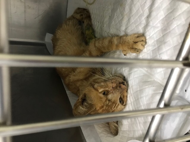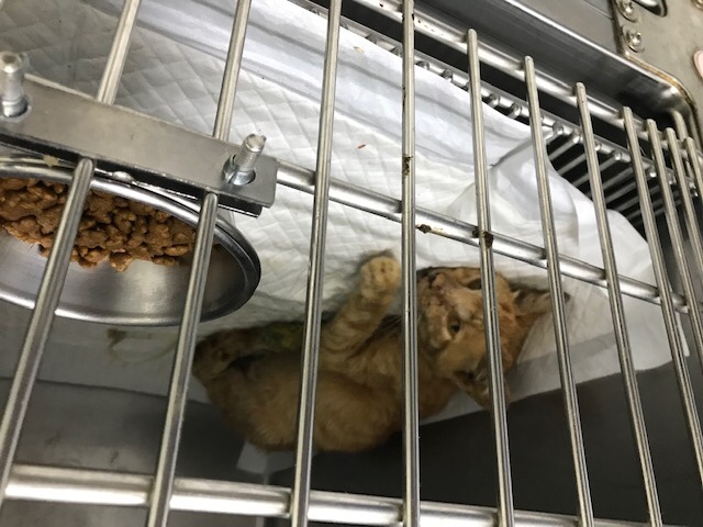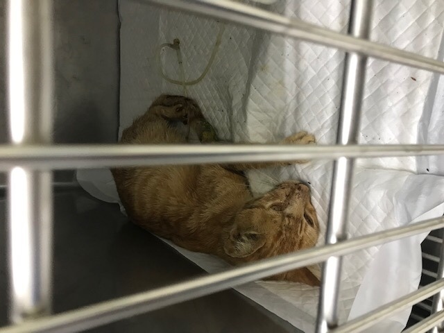 小橘子很親人小孩都能摸他。鄰居發現不吃不喝看起來脫水,於是通知能否帶他就醫。送醫院當天還自己乖乖走進去籠子裡。