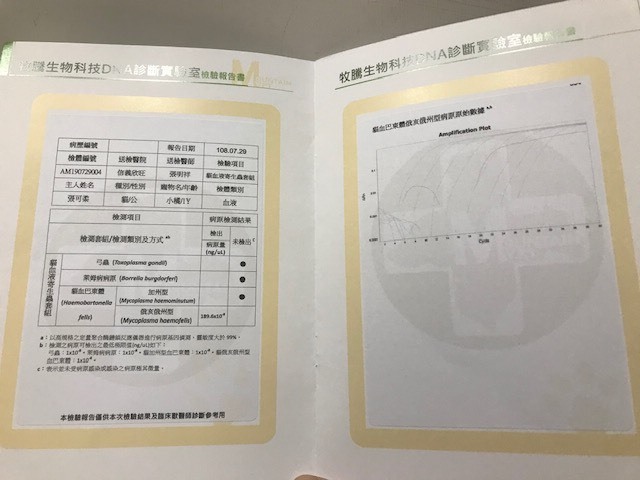 後來送到醫院後。小橘子就醫非常乖巧親人。但狀況非常不好。嚴重腹瀉,黃疸,脫水。先打點滴並抽血送驗。驗出來是感染血巴東。後來出現低血糖。醫生也幫小橘子打葡萄糖。
