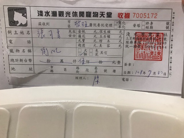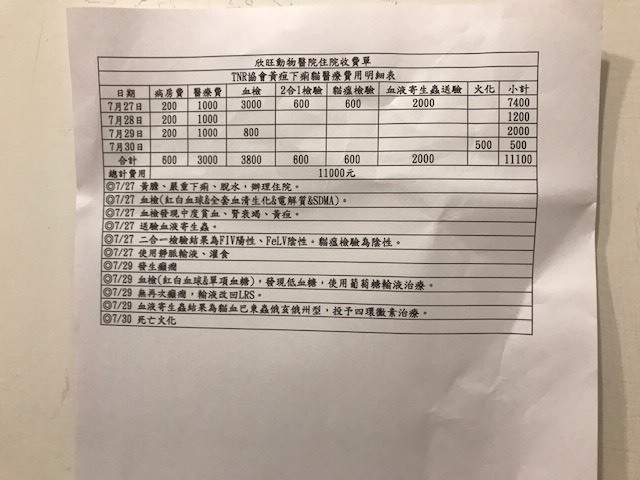 此醫療費用是7/27-30的治療費用動物近況說明: 醫院通知小橘子走了,
