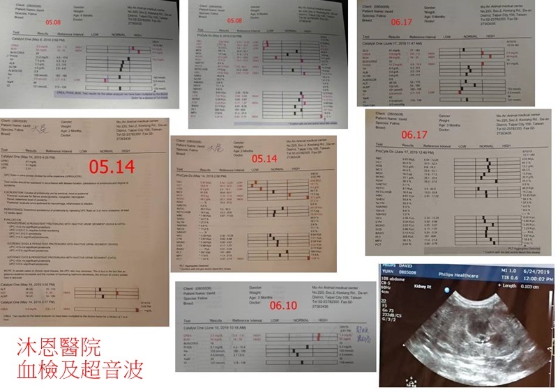 磷指數有上升,降磷藥物改為早晚各1顆,腸寶可繼續,現在沒再腹瀉,一般罐頭都可讓他吃,點滴20ml增加至25ml,鉀離子偏低一點,先觀察即可,再降低的話就需開口服鉀服用,腸胃道狀況不錯,蠕動正常,今日超音波掃描腎臟,目前是有點輕微水腎,醫師認為持續觀察即可,腎臟若有再變大就可能會影響腎功能,需作處理。