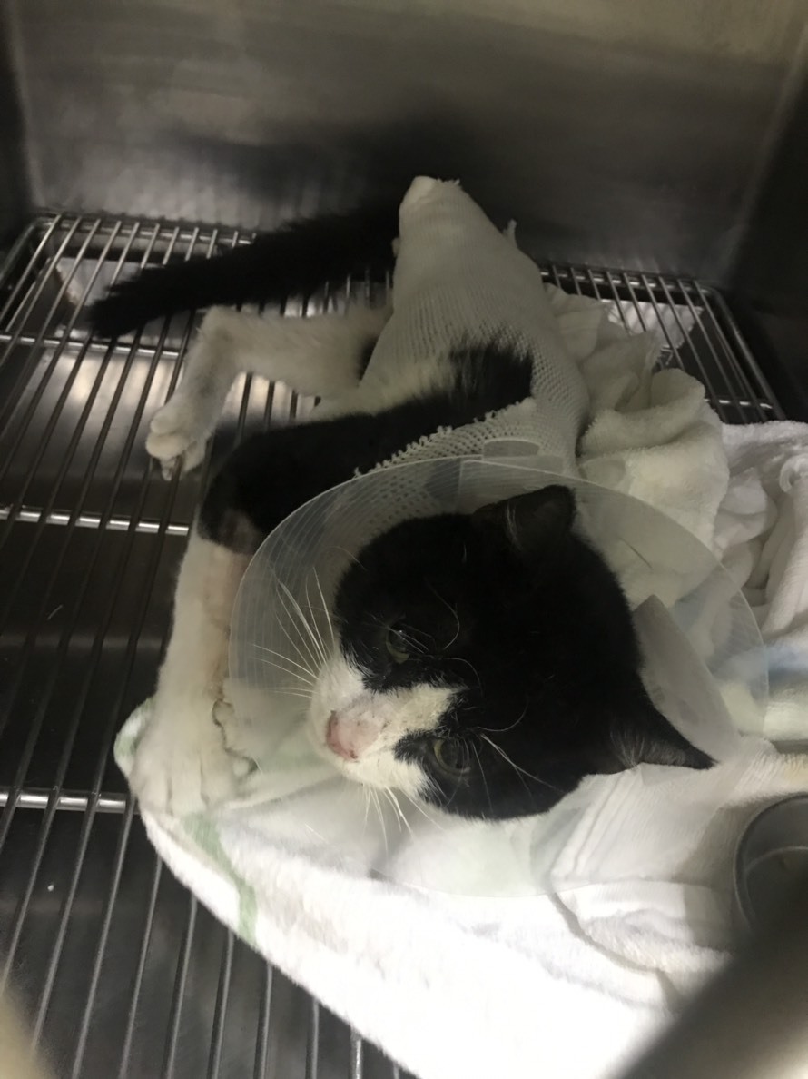 預計明天下午會做截肢的手術。動物近況說明: 預定8/12出院,目前已做完手術也已一起做完結紮。