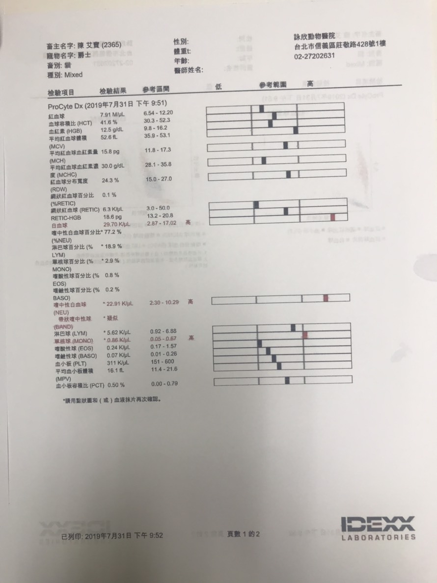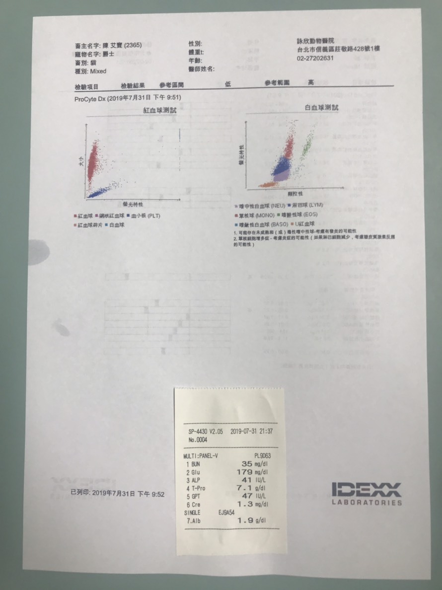 因為貓咪有點過瘦,所以醫生也趕緊先做了血檢確定是否有貧血,