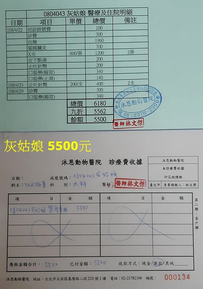 本筆醫助為灰姑娘於4月22日至4月29日間在沐恩醫院的治療費用,希望大家一起幫忙,謝謝大家。