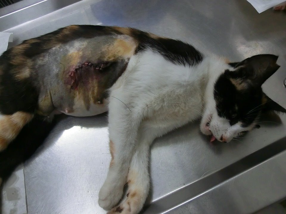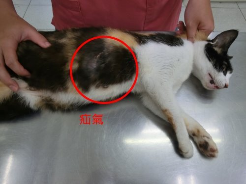 而這隻疝氣的母貓是志工開車經過