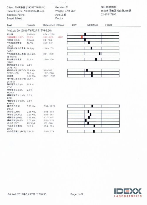 除血容比有稍微低於正常值外
