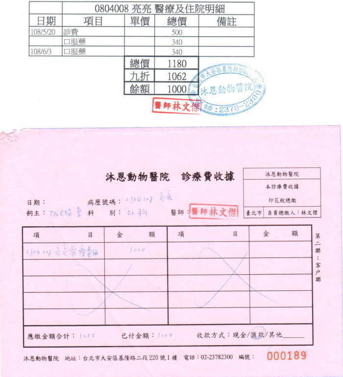 需持續使用口服抗生素、消炎藥控制,回診費用還請各位幫忙。