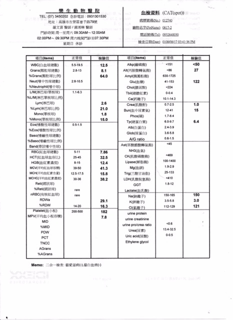 小鬍子到院後有血檢。麻醉赫尼亞修補。