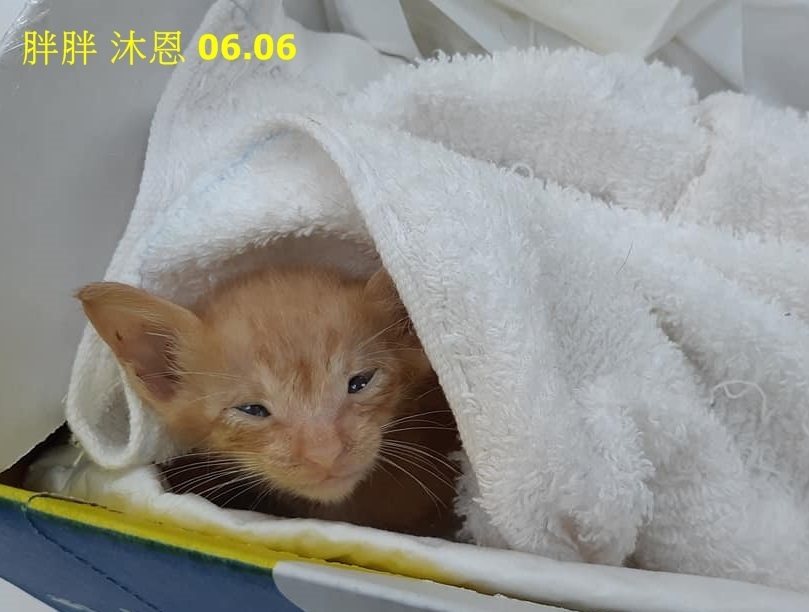 最為弱小的胖胖,雖然每天努力灌食,但體重不增反降,幾度緊急送醫,醫師說胖胖先天體質不好,加上一直未有充分食物營養,他的狀況真的很糟,在6月6日因情況不佳,緊急至沐恩醫院檢查,醫師進行超音波、血檢,認為胖胖可能細菌感染、貧血,且白血球、腎都很不好,要上靜脈注射,但擔心紅血球會撐不住,因此須先輸血,協會人員趕緊帶貓咪前往配血,經過討論後,決定翌日再進行,當晚先帶回照顧,工作人員還準備了氧氣機,但在回到協會後,小胖胖於凌晨離開了,曾經照顧過他的工作人員都很難過,胖胖在安養之家擁有過好多愛、好多呵護,願他帶著大家的祝福做個快樂的小天使。