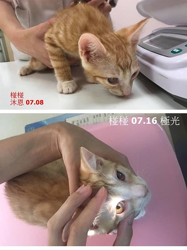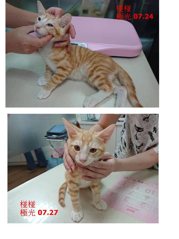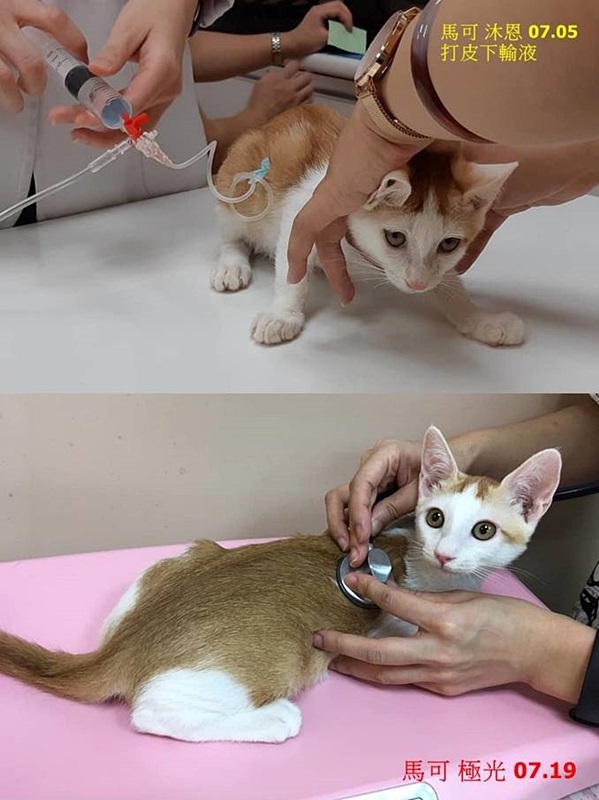 營養不良、跳蚤極多,因為鼻塞食慾極差都要人工灌食,治療幾日分別出院後便帶回協會照顧。