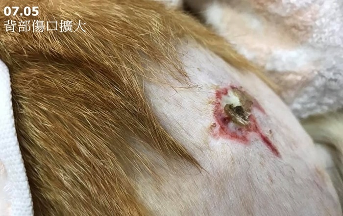 背部兩個傷口有逐漸擴大的跡象,