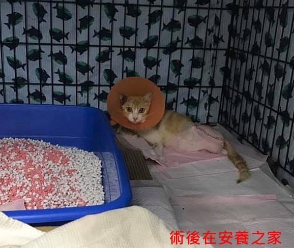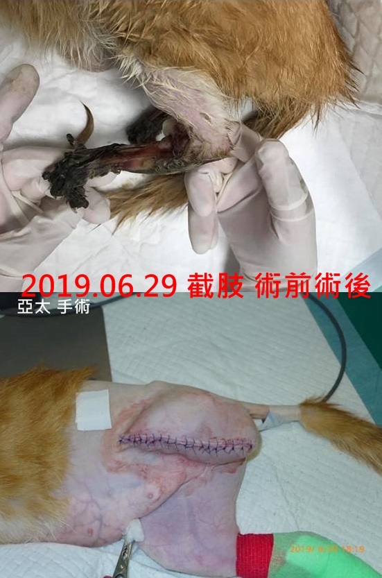 但因截肢是大手術,前三所醫院因無法立即手術,此時幸運有亞太醫院葉夫人的協助,插診安排手術時間,在先安排貓咪汎亞住院一天補充營養與水份後,於06/29由協會工作人員帶著小酒窩到亞太醫院。