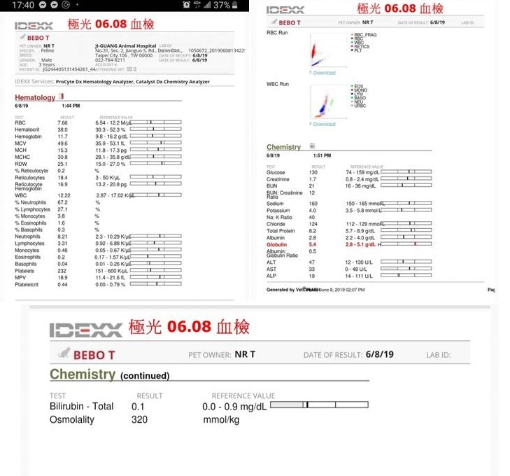 bebo近日精神不好、體重持續減輕,血檢結果,只有免疫蛋白稍高,其餘指數皆在正常值。