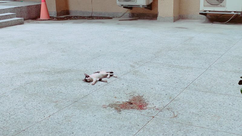 有隻貓咪倒地、還吐血,