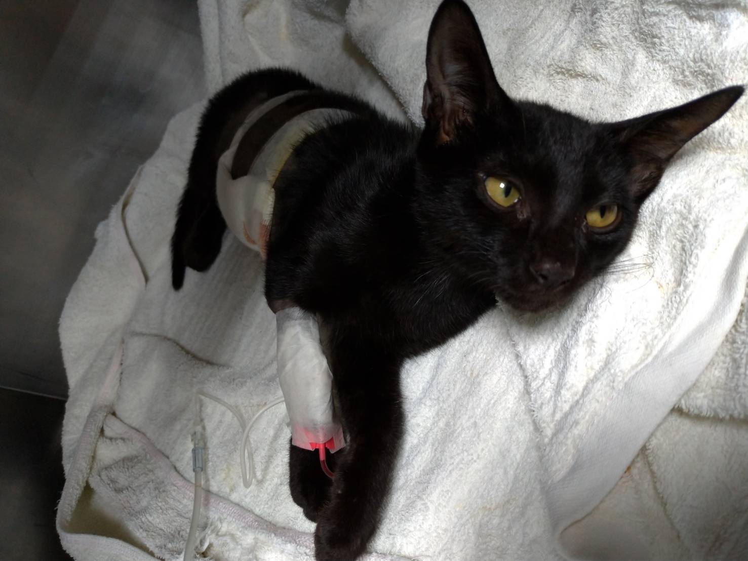 而至於右後腿的骨折處,手術費也是一萬多,醫生有建議若醫藥費過高可以考慮只做赫尼亞,因為小黑黑是幼貓復原能力較好,會自行在受傷骨折處修復,只是以後走路會一跛一跛。