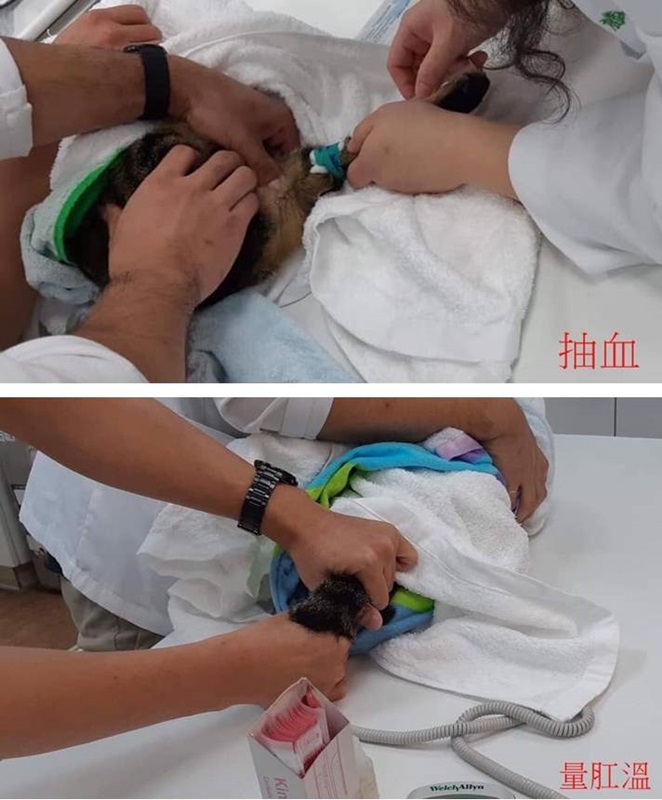 醫生在診間施打抗生素及100ml的生理食鹽水,並建議短期希望能以濕食為主、搭配泡軟飼料,若真不吃的話才提供少量多餐的乾飼料。