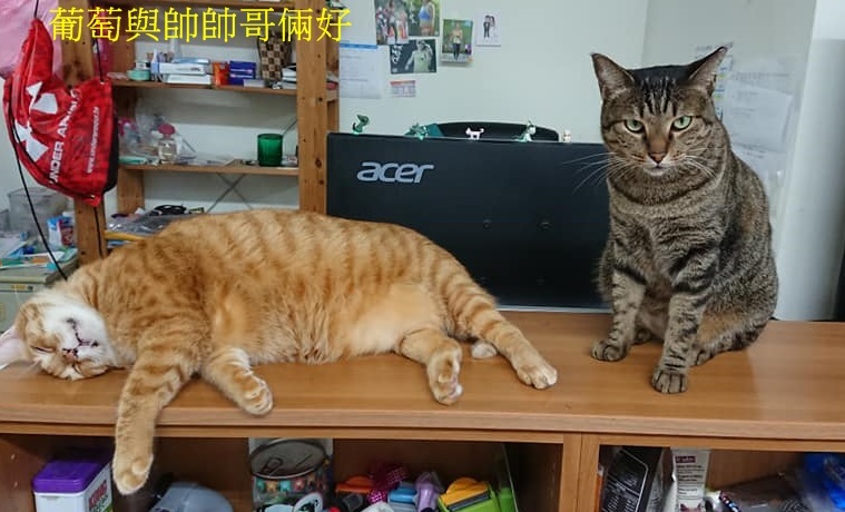 葡萄先住籠幾日以利觀察,幸好都沒有再嘔吐、精神食慾也都很好,一週後結束關籠日子,讓葡萄與他最愛的貓咪好朋友繼續黏踢踢。