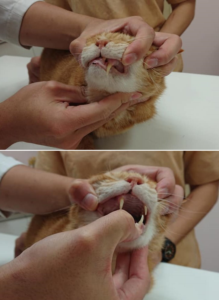 小黃因非常瘦弱,住院觀察了幾天才進行手術將腫瘤取出,但因腫瘤過大,無奈需一併截肢,先前的流浪生活及腫瘤讓小黃的健康情況很不好,腸道結構改變、大腸太粗、有巨結腸,致大便容易累積排不出,所以小黃需要長期吃軟便劑等藥物以幫助排便。