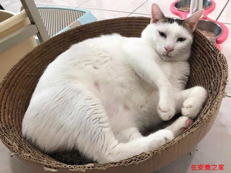 經過三周多的治療,阿義的咳嗽鼻涕情況已改善,食慾精神都沒有受到影響,每天在安養之家逛來逛去、找別的貓咪打打鬧鬧,玩累了,就翻肚肚躺在搖搖盆裡睡覺,模樣非常可愛,希望阿義一直健康平安。