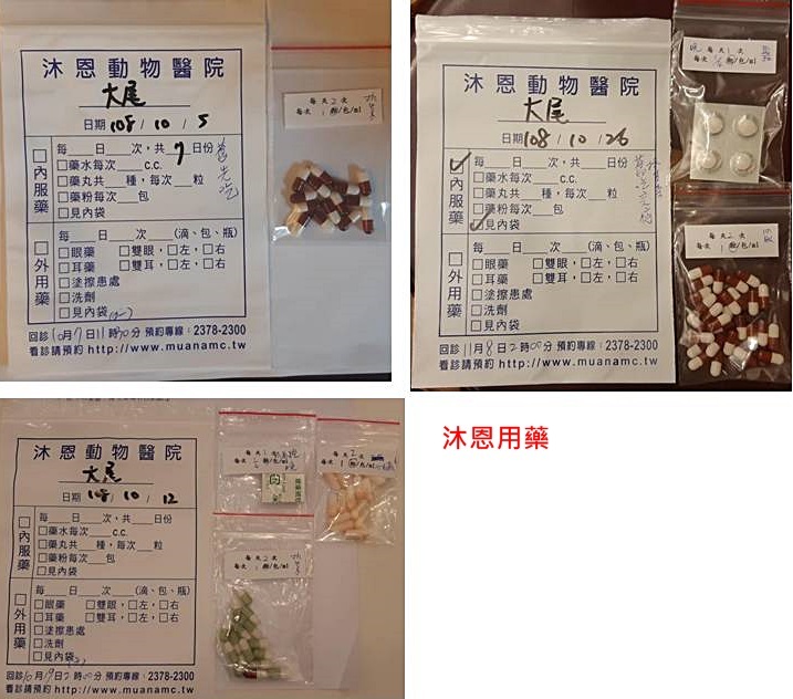 大尾因心跳較快,蘇醫師安排大尾於10/7住院,每天早晚服用1顆心臟藥及觀察。