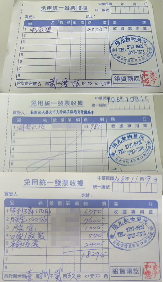 主題: 安養之家貓咪108年10/3~11/9 醫療用品 申請者姓名: 臺北市支持流浪貓絕育計劃協會 花色: 申請日期: 2019-11-10 20:46:38 申請者部落格: 申請者臉書網址: 所在縣市/合作醫院: 台北市/陽光犬貓專科醫院 治療費用: 69148元 需求人數: 151人 已結案 (2024-05-31 18:24:06) 報名人員: Michelle(已付款)、Genrei Chen(已付款)、無名氏(已付款)、溜溜、溜溜、Celine Lin x4(已付款)、SHan035(已付款)、無名氏(已付款)、Cathy、Cathy x2(已付款)、rei(已付款)、雅雅 x2(已付款)、海郁(已付款)、何小姐 x2(已付款)、a-song x2(已付款)、Chia-yu Michelle Mei(已付款)、Chia-yu Michelle Mei(已付款)、Alumi Lu(已付款)、cezeil(已付款)、無名氏(已付款)、Kye Wu(已付款)、舒婷(已付款)、妮妮 x2(已付款)、Genrei Chen(已付款)、何小姐 x10(已付款)、chun x2(已付款)、胖胖姐姐(已付款)、rei x2(已付款)、Suegie(已付款)、魚丸雙喵(已付款)、cml55(已付款)、Alex Lai x4(已付款)、無名氏(已付款)、何小姐 x4(已付款)、lin789 x10(已付款)、球球(已付款)、海郁(已付款)、Ting x2(已付款)、Emily Yen(已付款)、Sylvia Tsai x2(已付款)、Nicole Hsiao(已付款)、何小姐 x4(已付款)、gili(已付款)、charlotte x2(已付款)、李凱特(已付款)、老花、老花、Chunyao Chao(已付款)、Born 2 Her cafe(已付款)、Krystal(已付款)、何小姐 x2(已付款)、lin789 x10(已付款)、Chiayun Lee x2(已付款)、林佩瑩(已付款)、典媽 x10(已付款)、Victoria Liou x12(已付款)、馬羅姐姐(已付款)、Winny(已付款)、無名氏(已付款)、apple x4(已付款)、王小庭 x2(已付款)、cia(已付款)、黛咪 x2(已付款)、a-song x2(已付款)、etoile x4(已付款)、Terry x4(已付款)、黃小金(已付款)、陳昱先 x2(已付款)、Joan(已付款)、Caine x3(已付款)、 候補人員: 動物病情說明: 協會安養之家有許多貓咪在得到救援前,曾是受了重傷或患有疾病重症,拖著一身病痛在街頭或人煙罕至的偏僻地區掙扎著求生存,又或是遇到無良主人不願意花費為他們醫治因而被棄養,在得到救援後經過漫長的醫療,仍須要長期終身的醫療用藥,為了節省開銷,慢性病貓咪的藥品、保養品皆向配合的醫院採購,工作人員再依照醫囑指示使用。