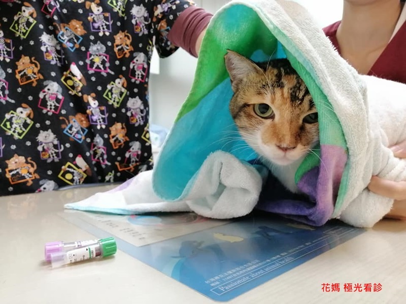 花媽是台中眷村救援案的貓咪,被救援前的生活環境很惡劣,飲食極差,生病也沒有得到適當即時的醫療,導致花媽健康情況很不好、瘦弱、持續腹瀉,協會帶她送醫檢查,除了體重過輕,還有貧血、免疫性肝炎、口炎。