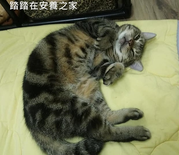 踏踏是2014年志工在五股收容所看到的被遺棄的貓咪,當時她隔著籠子不停的磨蹭,很撒嬌的對著志工喵喵叫,經志工詢問所方人員,得知踏踏是因為癲癇而遭到主人棄養,志工於心不忍,便將她接出送醫院治療。