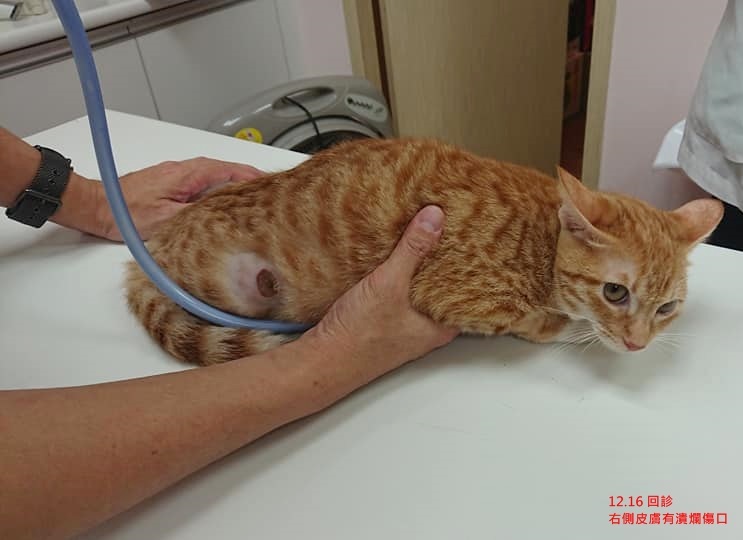明珠右側潰爛傷口看來變嚴重,今詢問沐恩林院長,院長告知處理步驟如下: 將掀起的白色死皮剪掉,以生理食鹽水小心清洗傷口,擦上藥膏,蓋上與傷口大小相同的敷料,再以紗布貼包纏固定,每天清理一次。 藥膏開封後須冷藏。