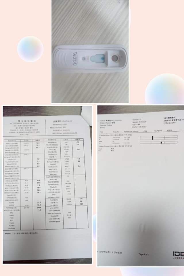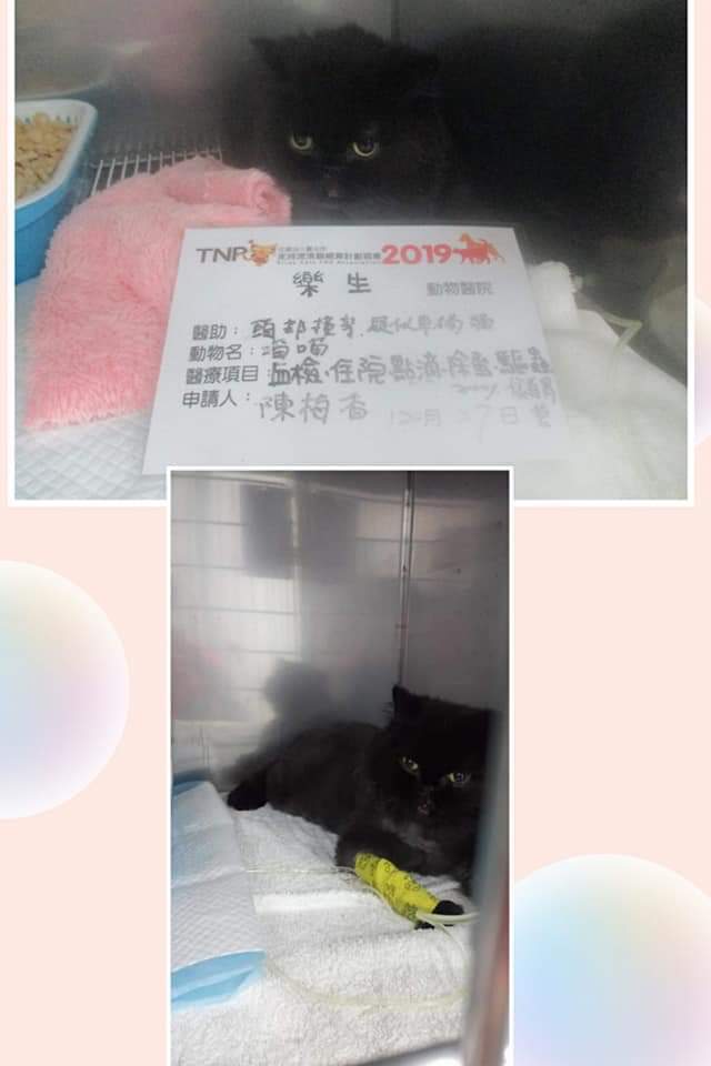 主題: 車禍吐血的貓咪 申請者姓名: 陳梅香 花色: 申請日期: 2020-01-19 17:20:46 申請者部落格: 申請者臉書網址: 所在縣市/合作醫院: 高雄市/樂生動物醫院 治療費用: 17250元 需求人數: 40人 已結案 (2024-05-31 18:22:21) 報名人員: Carrie(已付款)、Maggie(已付款)、lin789 x20(已付款)、Pon x2(已付款)、whobear、老虎狗讀者們 x15(已付款)、林小蝦(已付款)、 候補人員: 動物病情說明: 喵喵是在12月26日發現車禍吐血的街貓,目前在高雄樂生醫院治療中,27日入院時進食有困難,到31日可以吃罐頭,原先打算再没吃東西,醫生就施行插鼻胃管,因情況好轉所以作罷。但是肝指數很高,醫生解釋因為車禍遭撞擊而引起的,有針對定方面投藥,要等下次驗血才能知道是否降下來没?