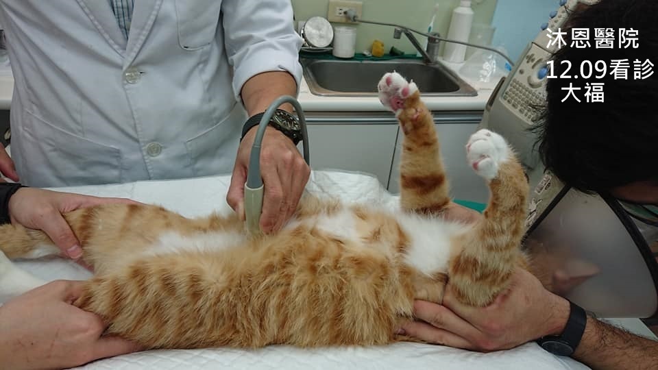 12月9日再至沐恩醫院檢查,醫師抽取尿液檢驗,並送細菌培養,細菌培養報告出來前先吃利尿通,照護員並每日餵大福喝魚泥水幫助排尿,12月12日依據報告結果開抗生素服用,12月23日再送尿液培養確認藥物效果,12月27日收到報告已無發現細菌,表示用藥有效,只要吃六週療程,大福的尿尿問題就可以痊癒了。