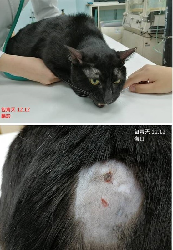 在安養之家的包青天適應得很好,在細心的照顧下體型越來越圓潤,和其他貓咪室友偶爾打打鬧鬧、追逐玩耍,日子過得很愜意,2019年12月初,照護員發現包青天的屁股有兩個洞,應是玩耍過頭被咬到,擔心傷口有否感染,因此約診沐恩進行檢查。