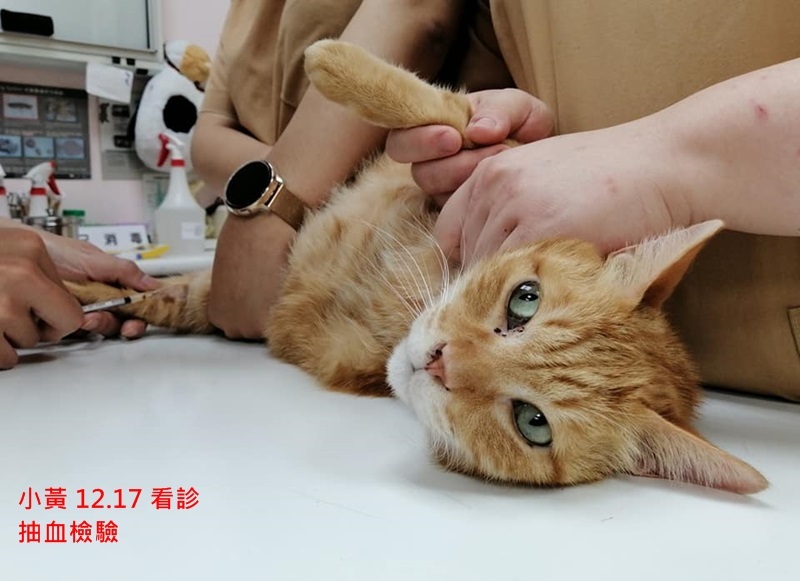 小黃是協會在103年救援的貓咪,原本生活在台南,有某戶好心人家餵食,一日發現小黃的前肢長了一顆腫瘤,幾個月下來腫瘤越來越大,這戶人家無法捉到小黃帶他就醫,於是向外求助,志工們自台北去到台南誘捕到小黃並送往重症醫院治療。