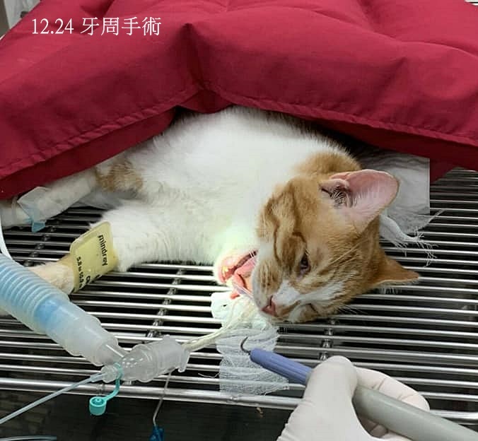 在大湖安養之家的生活,讓哈哈吃好睡好又有很多貓咪玩伴一起玩耍,哈哈過得很開心,2019年12月因發現看來口腔不舒服,因此帶回台北於12月12日至沐恩醫院看診,進行血檢,發炎指數高,口腔檢查看來牙齒狀況真的很不好,於是安排於12月24日進行牙周手術,哈哈的口腔後方有齒吸收疾病,共拔除了8顆狀況不好的牙齒、1個殘留牙根,哈哈體質對氣體麻醉產生輕微過敏,至血壓一度變低,改為液體麻醉,手術仍是順利完成。