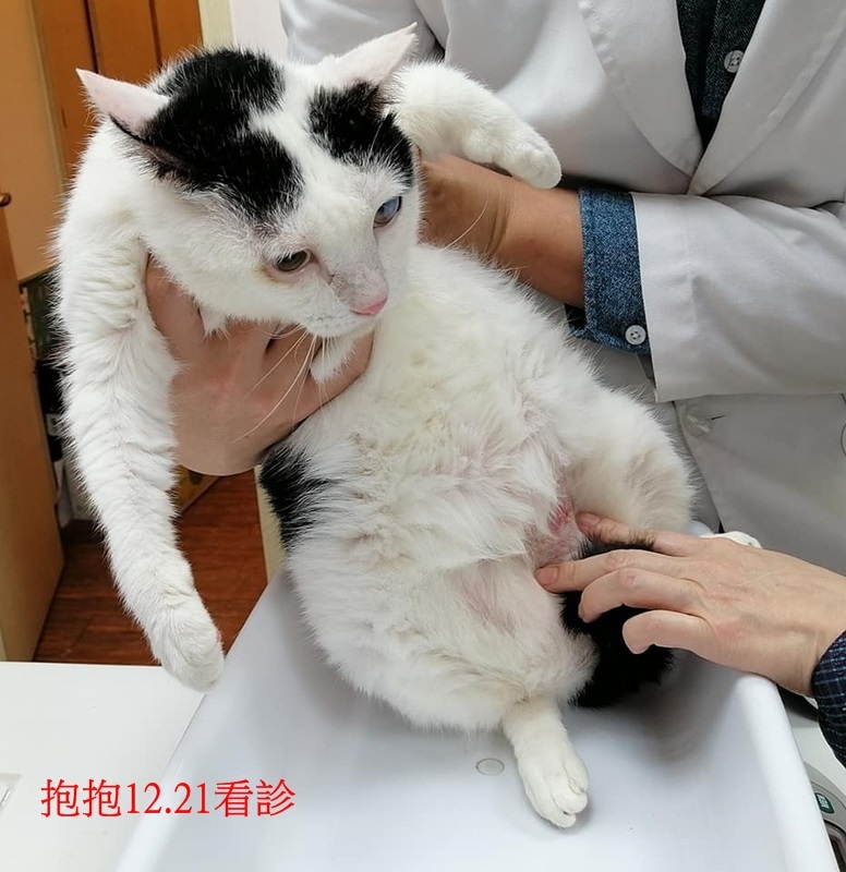 抱抱是2016年7月初協會志工所救援的貓咪,當時志工經過某公園,看見在公園裡的抱抱脖子上戴著一條項圈,等靠近後仔細瞧才發現,原來抱抱脖子上是一圈開放性的大傷口。