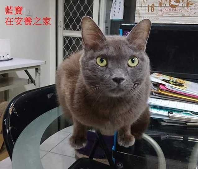 藍寶是從新莊收容所帶出的,當時還是年幼的小貓咪,帶出時的健康狀況很不好,就醫檢查白血球高達五萬九,還有輕微腹瀉,糞檢有球蟲、絛蟲、嚴重的呼吸道感染,治療期間早晚需灌食,並做過細菌培養、鼻腔灌洗、齒根瘺管縫合,治療很長一段時間,協會安排藍寶住進了安養之家。