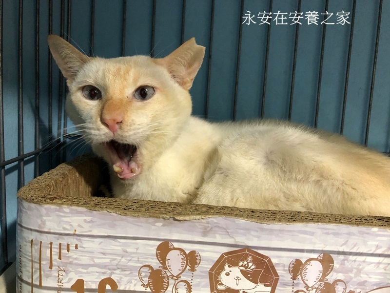 永安是來自北投區,當地一對老夫婦餵養很多貓咪,但因都未紮,貓口變多,引起鄰居反彈,會同里長、動保處強行將貓咪帶走,永安即是其中之一。協會協助TNR發現貓咪R回時過份乖巧,經過一番追查才得知內情,與原飼主老先生懇談後讓老人家安心,便將永安等貓咪帶回協會安養之家。