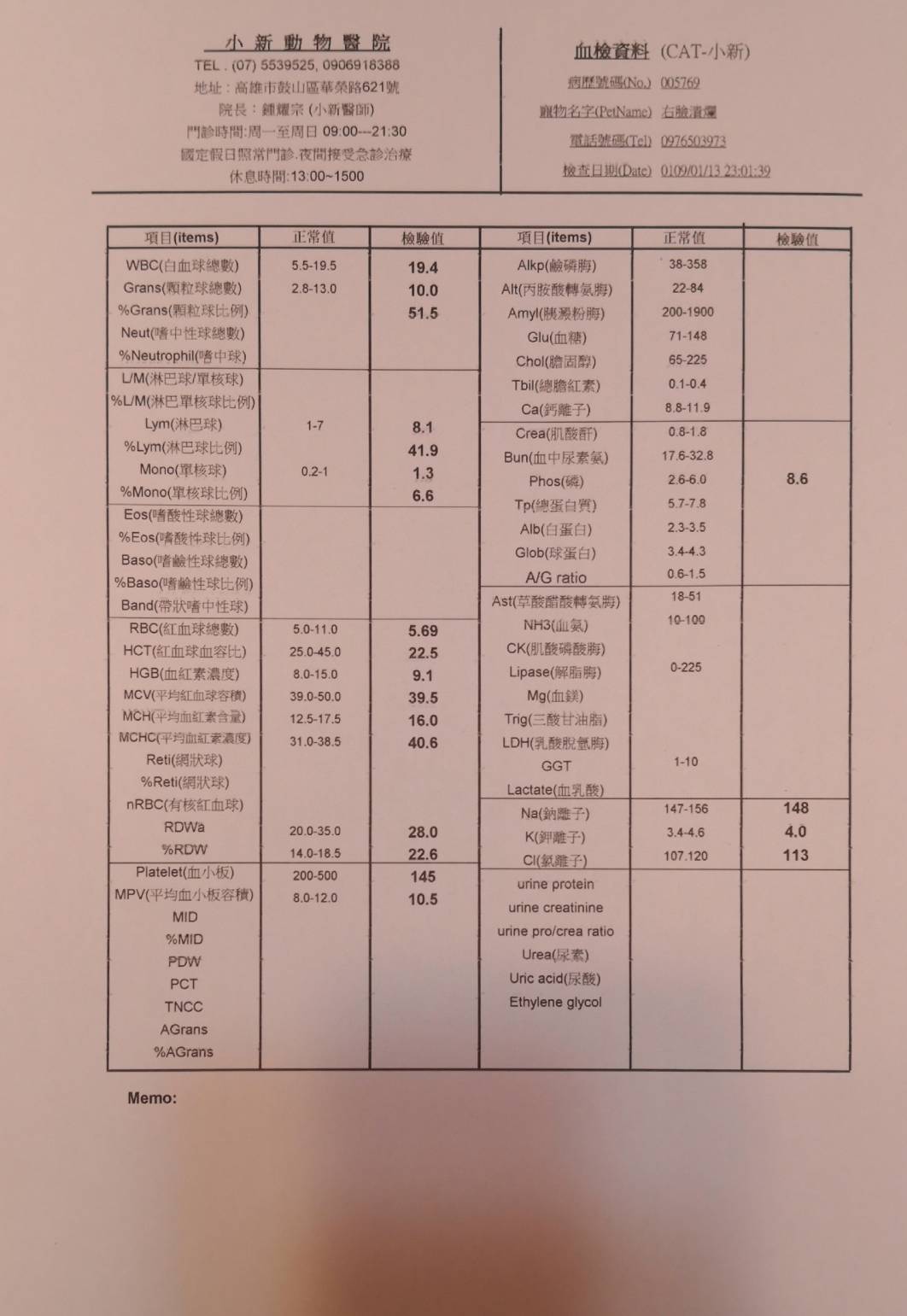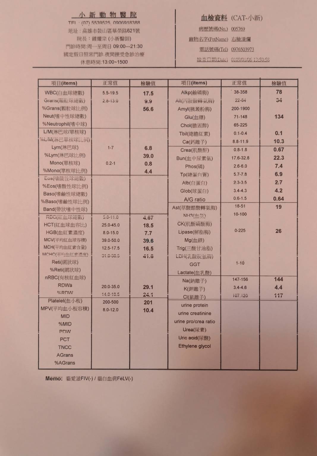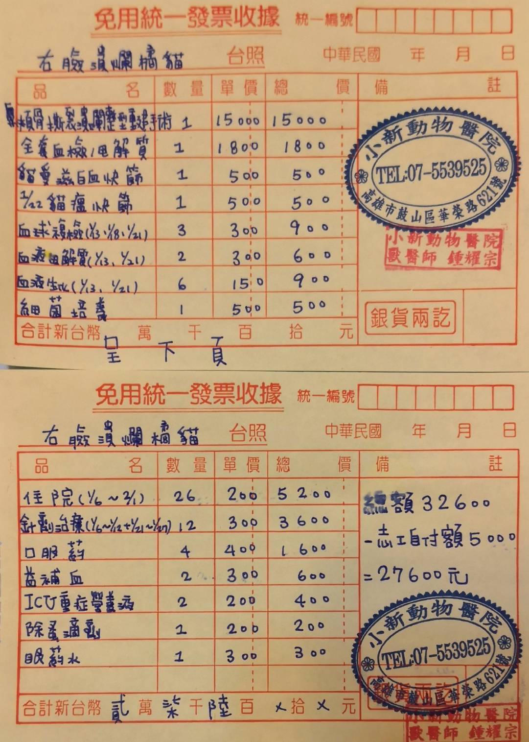 主題: 仁武右臉潰爛小橘 申請者姓名: 江珮慈 花色: 申請日期: 2020-02-02 23:29:33 申請者部落格: 申請者臉書網址: https://www.facebook.com/profile.php?id=100000883596885 所在縣市/合作醫院: 高雄市/小新動物醫院 治療費用: 27600元 需求人數: 60人 已結案 (2024-05-31 18:21:18) 報名人員: 彎彎 x3(已付款)、李吱吱(已付款)、蔡茶茶(已付款)、LARA(已付款)、DT x2(已付款)、Amanda Cho(已付款)、wandy x2(已付款)、王員外的爹 x2(已付款)、阿雪(已付款)、Yalin Chen(已付款)、佳佳 x4(已付款)、阿嘎(已付款)、阿嘎(已付款)、May、加菲(已付款)、鳳鳳(已付款)、Kenvy(已付款)、祐子(已付款)、Rico(已付款)、Irene Hu(已付款)、響林椰貓(已付款)、平(已付款)、Chi、Elie x2(已付款)、吳姐 x4(已付款)、馨*(已付款)、Elaine Lin x2(已付款)、Lian Kim(已付款)、熊、笨貓與妞妞(已付款)、捲捲米花(已付款)、Nana(已付款)、Peipei(已付款)、evelyn.lin66 x2(已付款)、寇妮妮(已付款)、小P(已付款)、小P(已付款)、Amanda Sun x2(已付款)、李詩詩(已付款)、Arvan Huang x2(已付款)、Alissa Lin(已付款)、kaki(已付款)、翎翎(已付款)、蔡宜靜(已付款)、carol chang(已付款)、martim(已付款)、snoopypeggy(已付款)、 候補人員: 動物病情說明: 餵食小橘貓時,發現牠半臉幾乎受傷潰爛,右眼受傷可能有失明之虞。後來成功誘捕送至小新動物醫院後,醫生診斷出貓咪鼻中隔跟鼻頰骨碎裂,上顎嚴重撕裂。由於傷口切割面平整,研判可能是被利器所傷,排除掉被狗咬傷的可能性。所幸的是,貓咪右眼眼球並沒有受傷,只是因為離傷口很近,稍有發炎現象。眼睛四周肌肉也有被拉扯到,所以感覺不是很自然。此外,因為貓咪受傷時間過久,未即時治療,很多組織都潰爛壞死,只能盡量將壞死潰爛的地方清理乾淨,然後重建鼻骨、上顎還有皮膚。隨後也檢驗出貓咪貧血嚴重,有開補血劑。至於愛滋白血是陰性,其他肝腎指數也都正常。治療期間,貓咪生存意志始終強烈,食慾非常好。不過過年前,貓咪突然出現吐跟拉的狀況,食慾明顯變差。為以防萬一,醫生決定檢驗是否染上貓瘟,所幸檢驗出是陰性,只能暫時先實施打針、吃藥及打點滴,看看貓咪後續狀況是否變好。直到過年後,貓咪已恢復食慾,不再吐跟拉,終於到了可接回貓咪的時候了。 動物近況說明: 貓咪離院前,醫生有交代說到,因為貓咪眼、口、鼻都有受傷過,所以後續照顧會比較費心。除了持續幫牠點眼藥水,保持眼球濕潤外,往後貓咪的呼吸道也較易出狀況,有可能必須長期靠藥物來控制。雖說貓咪從此不再像受傷前那樣健康,但是還是很高興因為這個救助的機緣,讓可憐的小橘貓不再流浪街頭,未來貓生有人疼愛照顧,過著幸福平安的好日子。