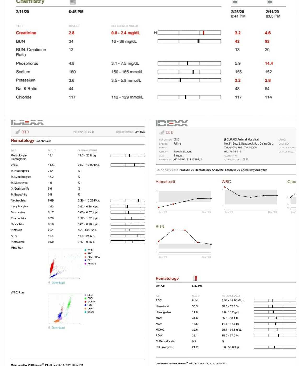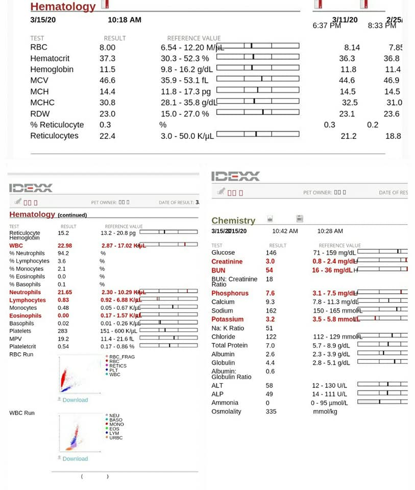 2/25回診體重也由2.53KG增加到2.86KG,血檢報告也都回到正常範圍職內,除腎臟指數但也改善許多,之前送檢血巴東結果為陰性,這回醫生改藥量看老貓身體是否可繼續維持動物近況說明: 3/11回診告知醫生這周老貓食慾及活動力有變差,其餘無異狀,老貓體重掉至2.69kg,醫生認為還算可接受範圍內,讓我鬆了一口氣,心想下周回診正常算治療告結束,也可讓妳出籠外自由活動
