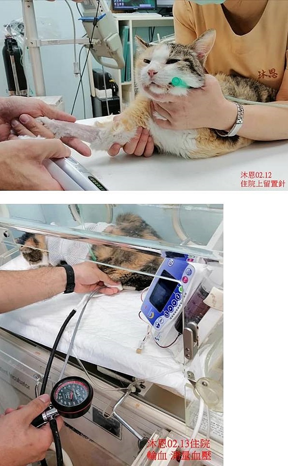雷夢娜持續進行內科治療,幾次回診的血檢結果,發炎及貧血情形逐漸變嚴重,精神食慾也下降了,2月12日出現呼吸較喘,緊急約診,X光檢查發現肺部影像變白,還有發燒及脫水情形,當天辦理住院吸氧、打抗生素、抗組織胺,翌日因紅血球指數過低,RBC3. 86(正常值6.54-12.2),HCT19.6(正常值30.3-52.3),協會兩度安排捐血貓咪,但仍無法使雷夢娜達到穩定狀態,她的白血球過低,脊髓無法製造白血球,二合一檢驗為皆是陽性,體內有不明的感染及出血,有疑似膿胸,裝上了胸管,醫師認為是白血病發作,治療並不樂觀。