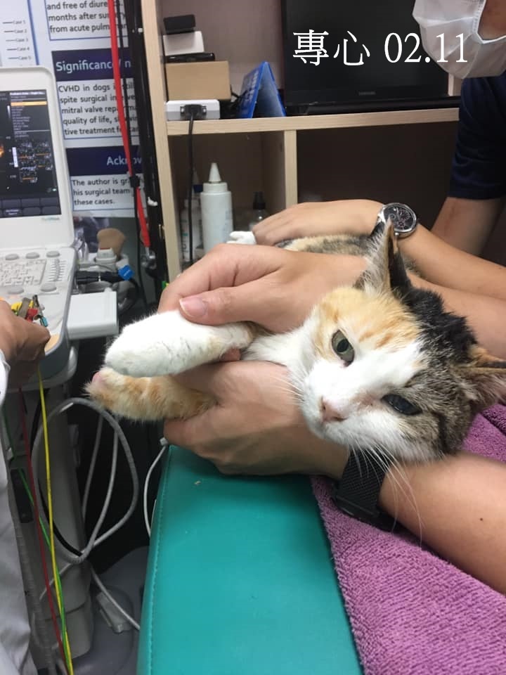 X光檢查,心臟變大顆,半年前檢查大小7點多,今天是8.5,心跳138,一般貓咪看診時都有150以上,雖然雷夢娜心跳原本就較慢,但因心臟變大,建議至心臟專科檢查確定心臟情形。