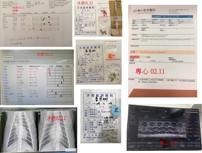 X光影像看來肺部開始變白,有感染情況,可能是2週前停吃抗生素,細菌或其他感染跑到肺部,目前有發燒及脫水情形,先住院吸氧、打抗生素、抗組織胺,明天會再拍X光查看。