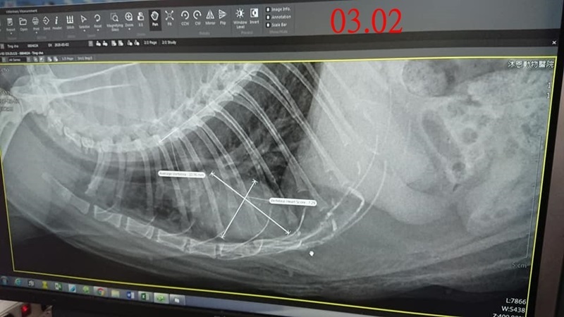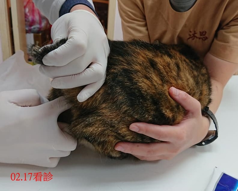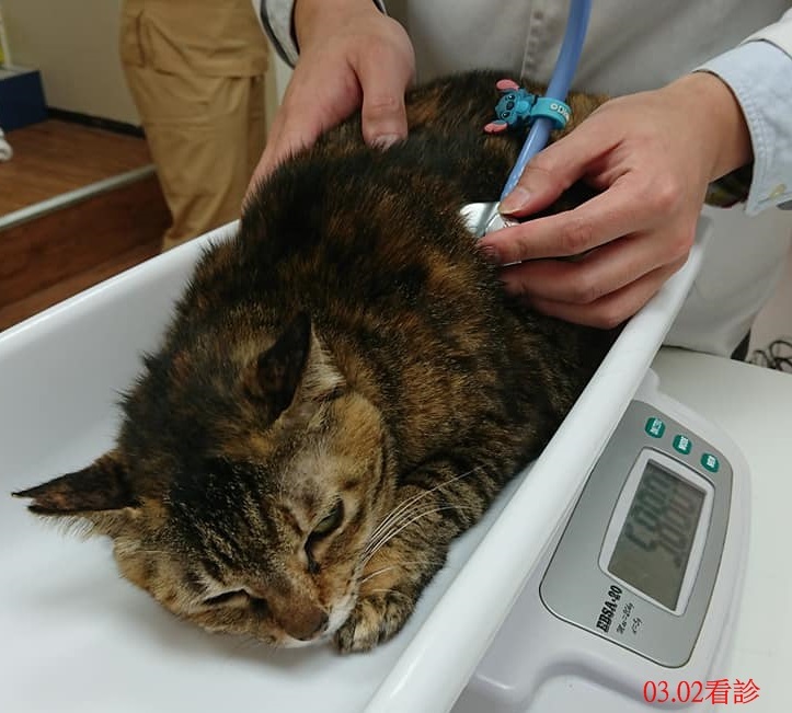 志工將貓咪帶回台北醫院檢查,照超音波、觸診,都認為無懷孕,肚子腫脹極可能是吃不潔食物,同步也寫信請教台大神經專科醫生,建議最好插管氣麻絕育。