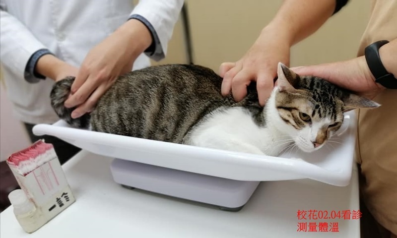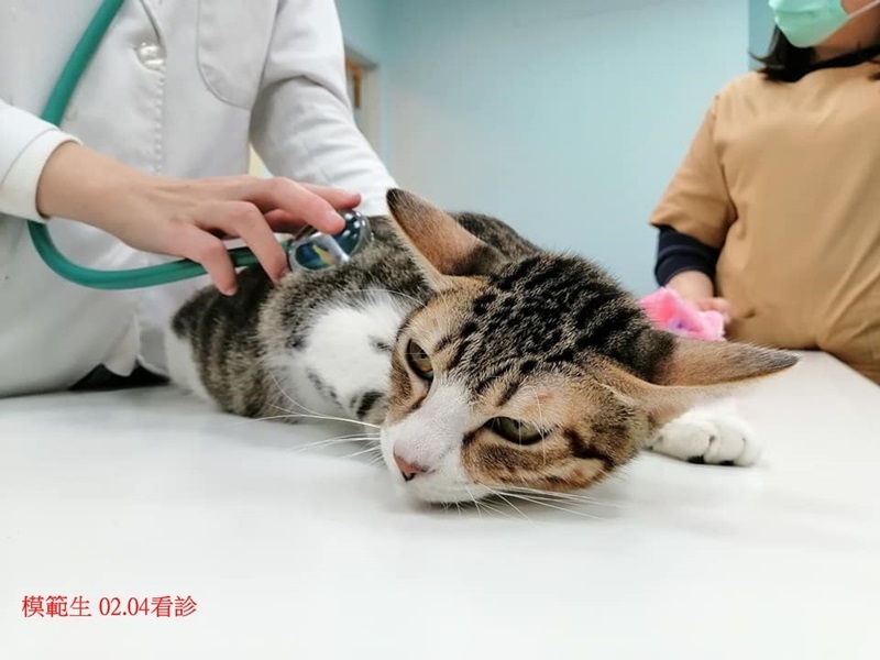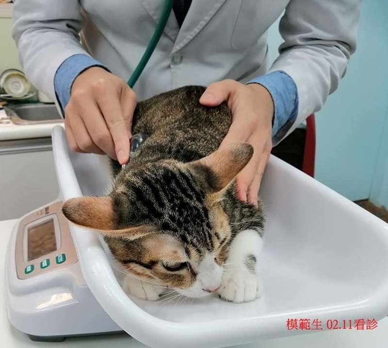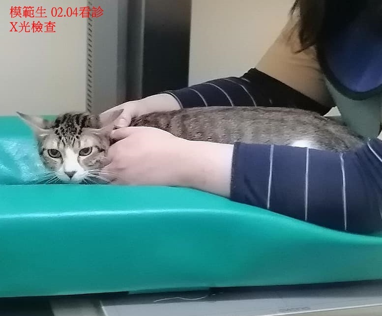 沒有發燒,聽診檢查兩邊肺部有雜音,所以再拍X光,發現肺部有一點點白色影像,研判是支氣管或肺部發炎,因臨床未發現其他明顯症狀,先開呼吸道及腸胃用藥,再請觀察食慾、便便情況,今天無血檢。