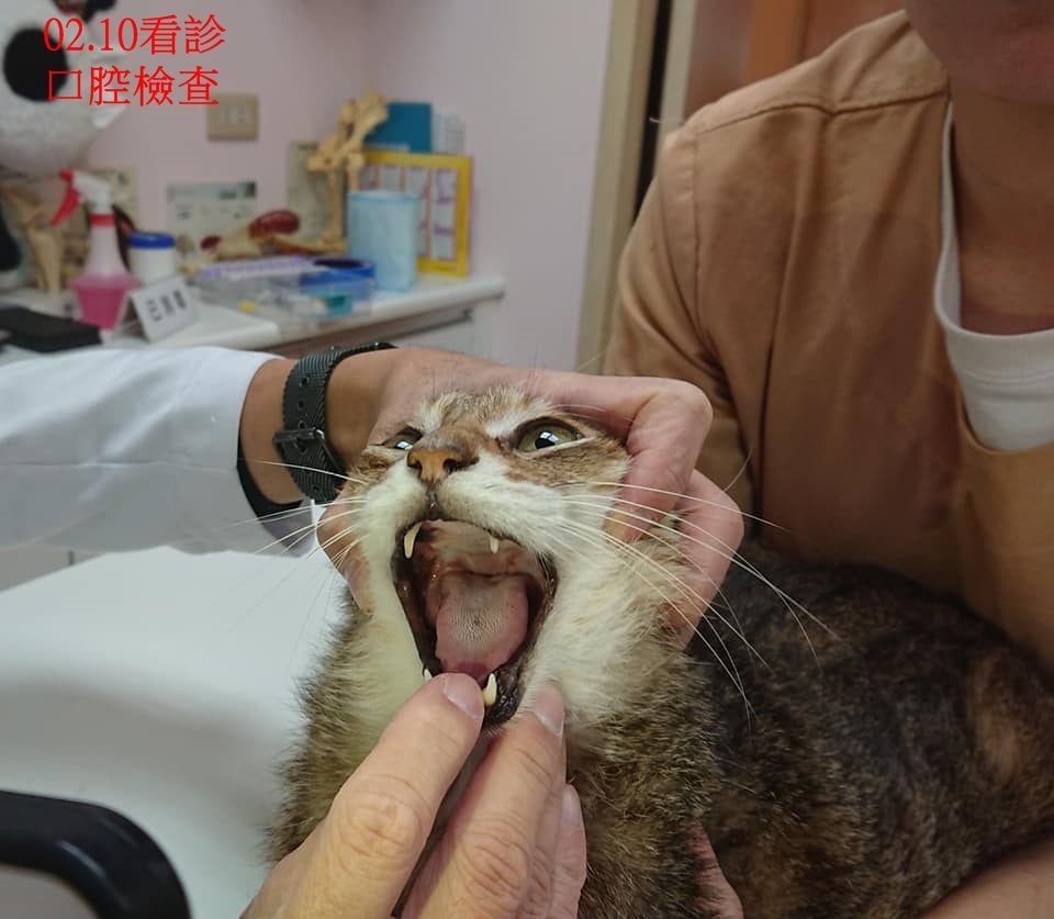 2019年過年期間,橡皮擦出現精神食慾不佳的情況,經檢查雖無發燒但有發炎現象,口腔檢查有大片紅腫,醫師先給抗生素、類固醇及嗎啡止痛,為使口炎能得到更有效的治療,開始評估加入蘇璧伶醫師主持的干擾素計畫,先接受兩週多的高劑量類固醇藥物治療,確定口炎沒有明顯改善,因此在2月26日進行口腔採樣送病理切片報告、拍攝x光,並開始施打干擾素。