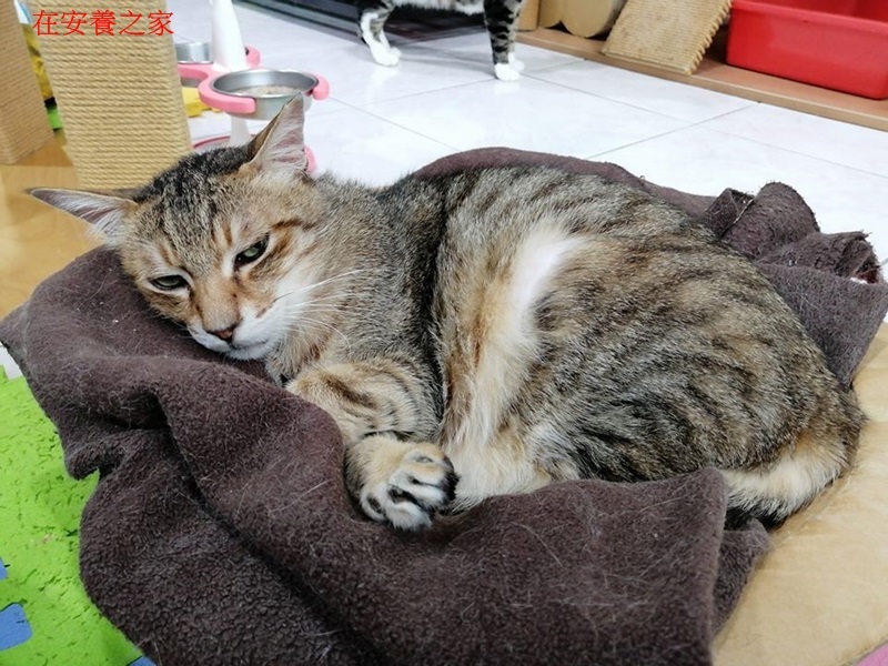 治療期間,橡皮擦的腹圍慢慢變大,但因愛滋帶原,傷口總是無法癒合,每天上藥、更換各式的藥物都無法改善,住院將近四個月才逐漸穩定,協會便帶他回安養之家,舒適的環境、充足的食物及營養品讓橡皮擦過得很開心,也認識了許多好朋友。