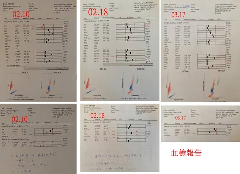 牙齦狀況持平,血檢結果,造血針效果良好,紅血球相關指數都已回升至正常值(RBC5.97-->7.51,HCT25. 8-->34.2),造血針可降為二週一次。
