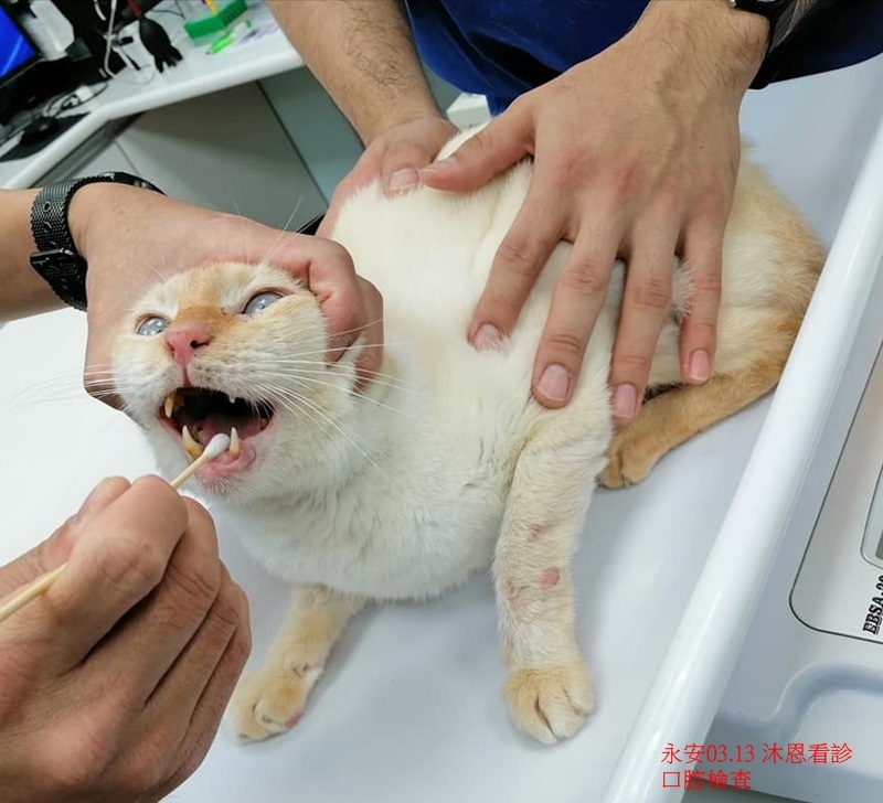 3月時照護員發現永安的牙齦流血,3月13日至沐恩看診,因永安的腎病,擔心對麻醉進行牙周手術有風險,因此還需要再評估,先開口服用藥希望避免發生感染,待二週後再回診追蹤效果。