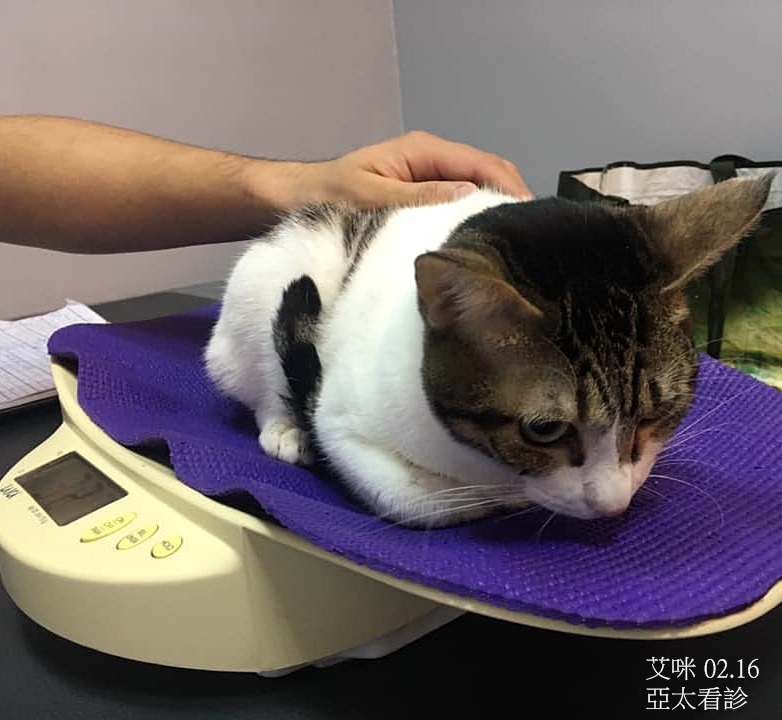 術後的艾咪排便情況改善很多,照護員除了每日餵艾咪服用藥物、餵魚泥水幫助排便,也須詳細記錄著大小便情況,有任何情況都立即向亞太醫院回報,並依照醫師指示視艾咪情況安排回診。
