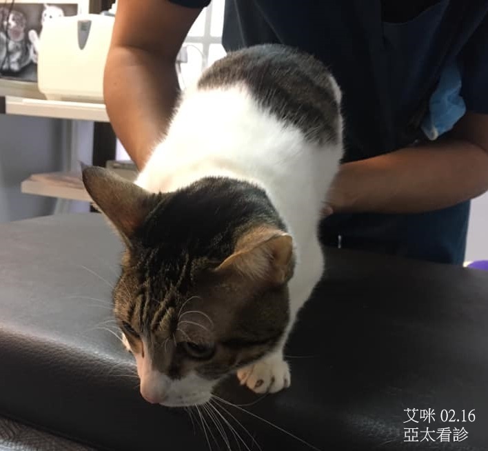 2020年2月間,艾咪因排便狀況不穩定,幾日少便、甚至無便後再一次較多的情況,照護員向亞太醫師回報,並遵照醫師指示調整度化液用量,為確定艾咪腸道有無積便,因此於2月16日約診亞太檢查,醫師進行觸診,幸好腸道並無積便,醫師指示調整用藥及飲食,並詳記紀錄回報。