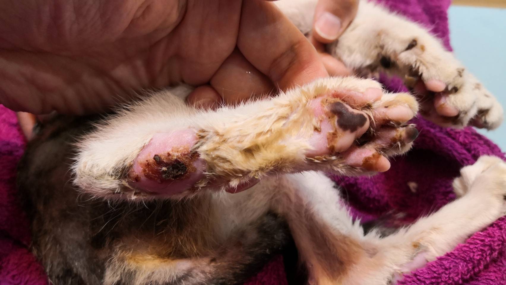 但因為本人這兩個月來幫貓結紮等等的花費以及冬季時貓群感冒花費,實在無力再支付,所以想尋求協會以及社會大眾的幫忙,拜託各位了,謝謝。動物近況說明: 四肢傷口已逐漸癒合,已接回自行照顧,謝謝協會。